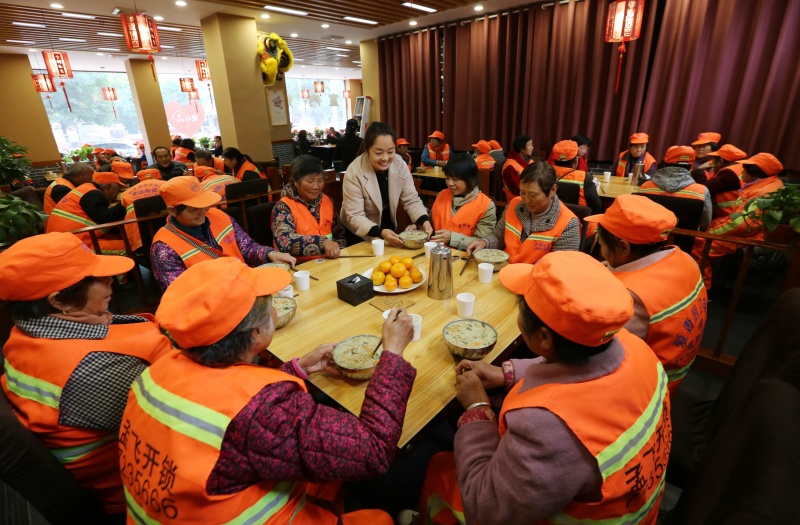 为让环卫工人吃得舒心,王海燕费了不少心思:夏天熬绿豆汤解暑,冬天有暖胃驱寒的热粥;烩菜、烩面、杂面条、鸡蛋面轮换着来,季节到了还摆上西瓜、橘子。