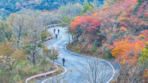 在秋色尽染的山间,骑友你追我赶,酣畅淋漓。