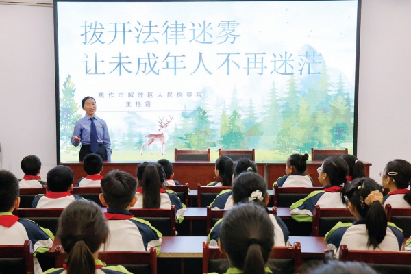 9月26日下午,市道清小学精心策划并开展了一场主题鲜明、内容丰富的法治宣讲活动,特别邀请解放区人民检察院检察官王艳霞为全校师生带来了一堂兼具知识性、趣味性与教育性的“法治盛宴”。